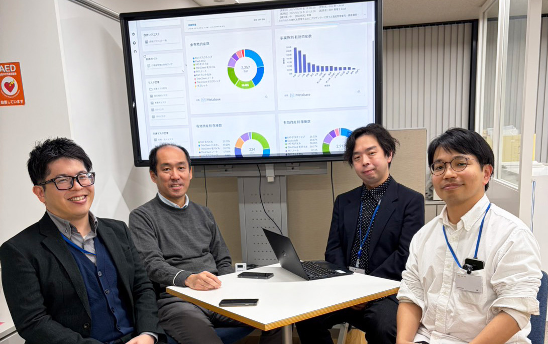 資産管理における同システム稼働後の最大の成果は「Excelでは見えなかったものが可視化されたこと。」だと、同社ITマネジメントユニット企画チームの杉山賀一氏は話します。同社では稼働していない端末は在庫として本社のある大阪オフィスに戻すルールとしています。しかし、3次元的な管理と、プリザンターが備えるデータのフィルター機能、連携したBIツール「Metabase」を活用したダッシュボードによって、日本各地の製造所に「在庫」の状態で多くの端末が遊休している可能性が浮かび上がってきたのです。「それは、実際は在庫ではなくまだ稼働しているのかもしれない。あるいは既に大阪に戻ってきており、手違いで製造所にあると表示されていることも考えられる。そこを現場に確認することによって管理データを正したり、もし本当に製造所で在庫状態にあるなら大阪に返却するなどして、管理を適正化することができるわけです。イレギュラーデータを検知し、可視化できたことは、プリザンター導入の意義を十分に示す成果だと考えています。」(杉山氏)